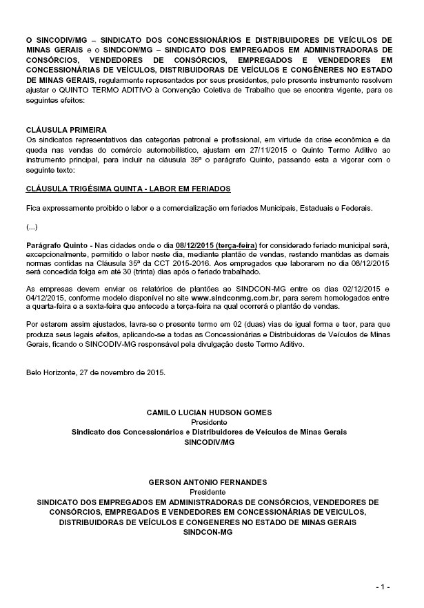 Quinto Termo Aditivo à C.C.T. 2015/2016
