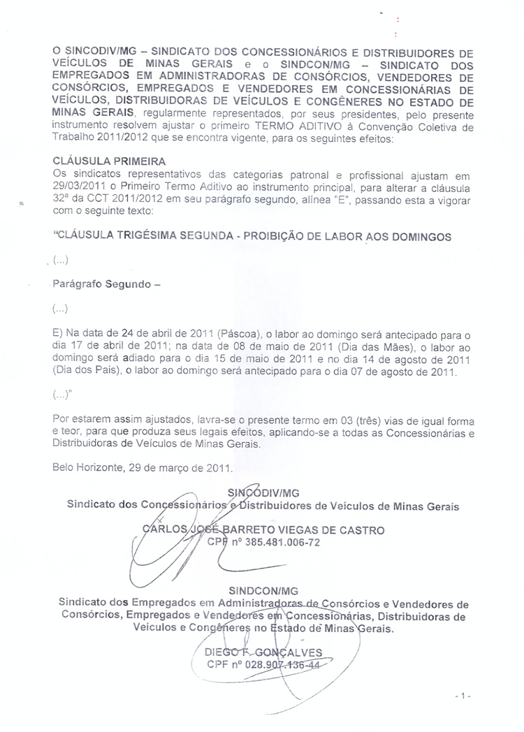 Primeiro Termo Aditivo à C.C.T. 2011/2012